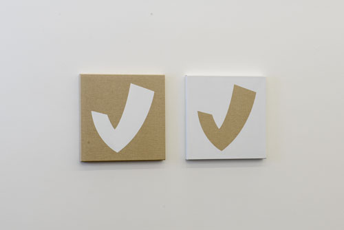Ernst Bonda, der Erfinder des Original-Umwelt-Schutzpapiers und Initiator der ersten Altpapiersammlung der Schweiz, verbindet den Nachhaltigkeitsgedanken mit seiner künstlerischen Arbeit. Seine Kunst ist ein Manifest für den bewussten Umgang mit materiellen sowie ideellen Gütern. Seine wiederkehrende geometrische Bildsprache sowie die Vorliebe für Naturmaterialien kommt auch im Werk Spiegelbild E/F (2012) zum Ausdruck, das zwei Versionen derselben Form zeigt. Einmal wird das Motiv mit Acrylweiss auf Rohleinen gemalt, das andere Mal wird die übrige Fläche weiss eingefärbt und somit das Motiv ausgespart. Dadurch, dass die grundierte Seite des Reinleinen nach hinten liegt, wird die Lebendigkeit der rohen Seite in den Malprozess miteinbezogen.