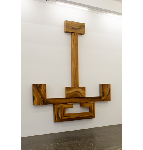 Markus Müller schafft grossformatige Skulpturen aus einfachen Materialien, die er anschliessend malerisch bearbeitet. Auch in der Kunst Halle sind zwei aus Sperrholz geformte Skulpturen – Rand der Debatte (2011) und Horoscope (2009) - zu sehen. Mit dem Auftrag von Ölfarbe imitiert er Oberflächen von Holz und verändert dadurch die Wahrnehmung der Volumen – in Bezug auf Gewicht, Dichte und Wert des Materials. Seine Skulpturen sind bildhauerische Umsetzungen von Elementen aus der Natur, erinnern an Möbel oder zitieren Objekte der musealen Präsentation von Kunstwerken wie Sockel und Rahmen. Vorwiegend sind seine Werke jedoch als Verbindung von Elementen aus Natur und Kultur zu sehen.